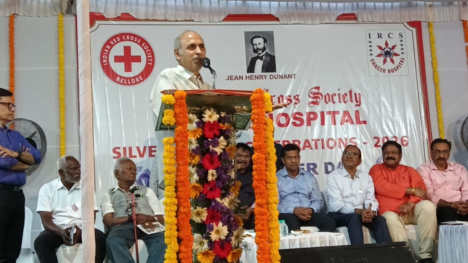 ఇండియన్ రెడ్ క్రాస్ సొసైటి శ్రీ పొట్టి శ్రీరాములు నెల్లూరు జిల్లా శాఖ నిర్వహిస్తున్న పొదలకూరు రోడ్ నందు గల క్యాన్సర్ హాస్పిటల్ రజితోత్సవ కార్యక్రమం మరియు ప్రపంచ క్యాన్సర్ దినోత్సవం లో నెల్లూరు జిల్లా కలెక్టర్, రెడ్ క్రాస్ గౌరవ చైర్మన్ హిమాన్షు శుక్లా చేతుల మీదుగా మొదట జ్యోతి ప్రజ్వలన గావించి, సావనీర్ విడుదల చేయడం జరిగింది. ఈ సందర్భంగా కలెక్టర్ మాట్లాడుతూ 2001 లో 6 మందితో ప్రారంభించిన క్యాన్సర్ హాస్పిటల్ నేడు 150 పడకల ఆసుపత్రిగా అభివృద్ధి చెందిందని దీనికి సహకరించిన దాతలకు కృతజ్ఞతలు తెలియజేశారు. తదనంతరం క్యాన్సర్ హాస్పిటల్ కు విరాళాలు అందించిన దాతలకు సన్మానం చేశారు.. దాతలు శ్రీహరి రెడ్డి కోటి రూపాయలు ప్రకటించారు, శ్రీ యాలమూరి రంగయ్య నాయుడు ఐదు రూములు హాస్పిటల్ నిర్మాణానికి సహాయం చేస్తున్నట్టు ప్రకటించారు. దాతలు జెఎస్ రెడ్డి చారిటబుల్ ట్రస్ట్, భగవాన్ మహావీర్ ట్రస్ట్, సుమంత్ రెడ్డి, దొడ్ల స్వాతి, సెయిల్ కంపెనీ లిమిటెడ్ మేనేజర్ శ్రీ ఆల్బర్ట్ డేవిడ్ పీటర్ , సీతారాములు, తదితర దాతలను సన్మానించారు. ఈ కార్యక్రమంలో ఇండియన్ రెడ్ క్రాస్ సొసైటీ రాష్ట్ర అధ్యక్షుడు వై.డి. రామారావు, ఉపాధ్యక్షుడు రామచంద్ర రాజు, కోశాధికారి శ్రీహరి రావు, ఇండియన్ రెడ్ క్రాస్ సొసైటీ నెల్లూరు జిల్లా శాఖ అధ్యక్షుడు శ్రీ వాకాటి విజయ కుమార్ రెడ్డి, వైస్ చైర్మన్ శ్రీ చమర్తి జనార్ధన్ రాజు, కోశాధికారి శ్రీ సురేష్ కుమార్ జైన్, క్యాన్సర్ హాస్పిటల్ కో ఆర్డినేటర్ శ్రీ యా లమూరి రంగయ్య నాయుడు రాష్ట్ర శాఖ మేనజింగ్ కమిటీ సభ్యులు శ్రీ డాకారపు రవి ప్రకాష్ మేనజింగ్ కమిటీ సభ్యులు శ్రీ కలికి శ్రీ హరి రెడ్డి, శ్రీ ఎడవల్లి సురేష్, శ్రీ దాసరి రాజేంద్ర ప్రసాద్, శ్రీ బయ్యా ప్రసాద్ శ్రీ గుణపాటి ప్రసాద్ రెడ్డి, దాతలు శ్రీ వెంకటేష్ రంగాచారి, క్యాన్సర్ హాస్పిటల్ చీఫ్ మెడికల్ ఆఫీసర్ డాక్టర్ టి. లక్ష్మి, మెడికల్ సూపరింటెండెంట్ డాక్టర్ యం. నాగేశ్వరరావు, ముత్తు, నెల్లూరు నగరానికి చెందిన ప్రముఖులు దాతలు, ఇండియన్ రెడ్ క్రాస్ సొసైటీ సభ్యులు అధిక సంఖ్యలో పాల్గొన్నారు..