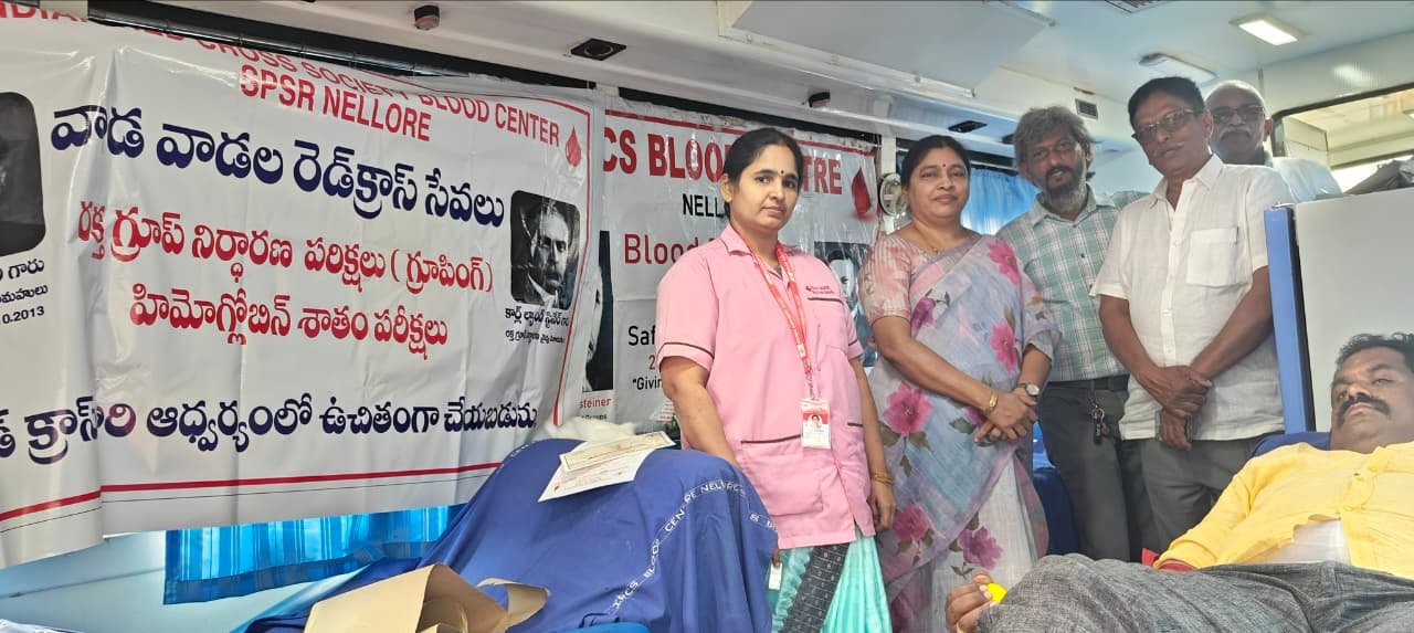 SPSR నెల్లూరు జిల్లా కలెక్టర్ రెడ్ క్రాస్ ప్రెసిడెంట్ శ్రీ హిమాన్షు శుక్లా గారి చేతుల మీదుగా ప్రారంభించుకున్న రెడ్ క్రాస్ వాడ వాడలా సేవలను ఈ రోజు 09-01-2026 న VRC సెంటర్ YSR కూల్ డ్రింక్స్ వద్ద ఏర్పాటు చేయడం జరిగింది. ఈ కార్యక్రమానికి ముఖ్యఅతిథిగా రక్తదాన ప్రేరేపకులు తిక్కవరపు సుకుమార్ రెడ్డి గారి చేతులమీదుగా ప్రారంభించుకోవడం జరిగింది. రెడ్ క్రాస్ వాడ వాడల సేవలను ప్రజలు బ్లడ్ గ్రూపింగ్ , హిమోగ్లోబిన్ శాతం చెక్ చేపించుకొని వాలంటరీగా రక్తదానం చేసారు ఈ కార్యక్రమం లో రెడ్ క్రాస్ చైర్మన్ వాకటి విజయ కుమార్ రెడ్డి గారు మేనేజ్మెంట్ కమిటీ సభ్యులు బయ్యా ప్రసాద్ , యడవల్లి సురేష్ బాబు , దాసరి రాజేంద్ర ప్రసాద్ , సెక్రటరీ మస్తానయ్య పాల్గొన్నారు
